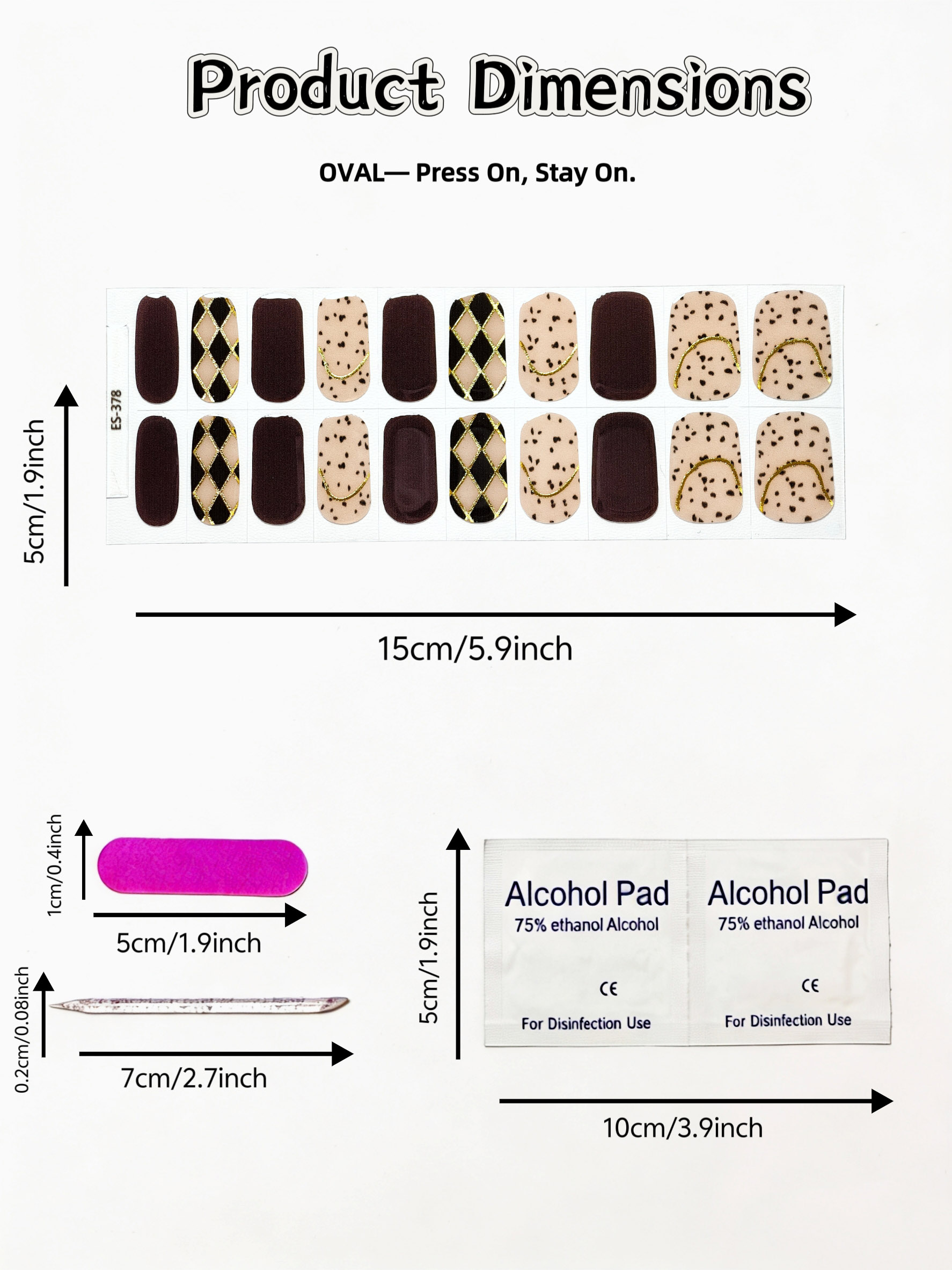 2. [Oval Shape Slims Hands] 20 multi-sized wraps fit most nail widths; the oval curve perfectly elongates fingers, flattering short or full hands.